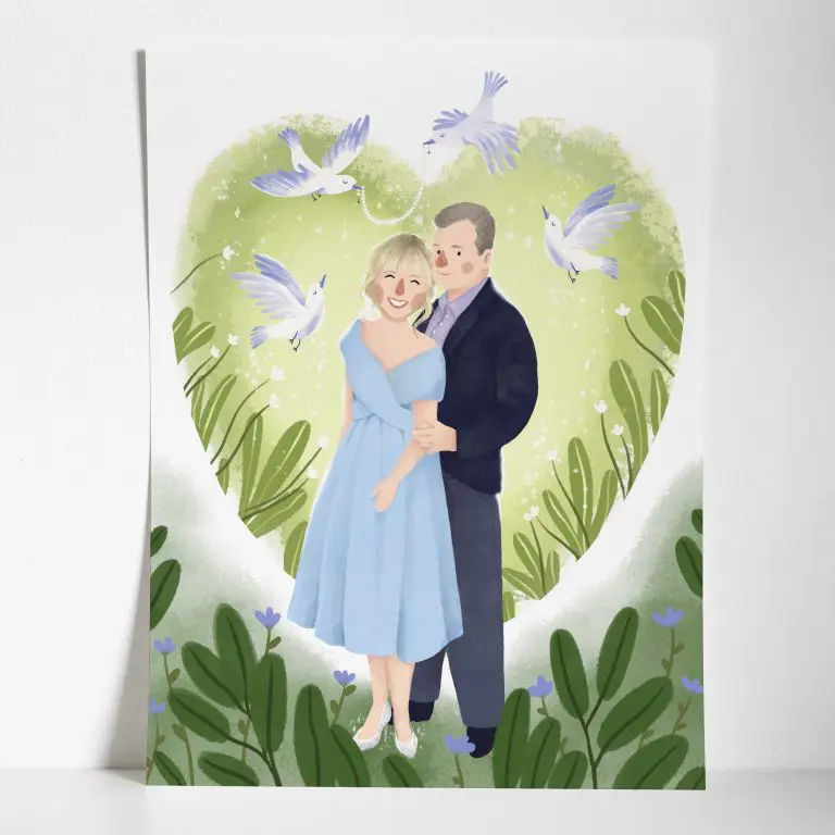 Skoro nawet nagłówek mi się zrymował to musi być to obiecująca propozycja! Oprócz twarzy na kubkach znajdziesz też u mnie tradycyjną formę portretu przeznaczonego do powieszenia w ramie. Pozostając w ilustracyjnym stylu każdą portretową kompozycję tworzę wedle indywidualnego pomysłu i sugestii klienta. Zwracam uwagę by portret miał zawsze serdeczną i ciepłą atmosferę, oddawał uczucia, którymi darzymy osobę odbarowywaną. Mama w swoim portrecie może dostojnie stać wśród kwiatów, a może też wcielić się w każdą pozę i rolę – zwykle nie ograniczam niczyjej wyobraźni! Dodanie na portrecie innych bliskich osób to także dobry pomysł na prezent dzień matki.