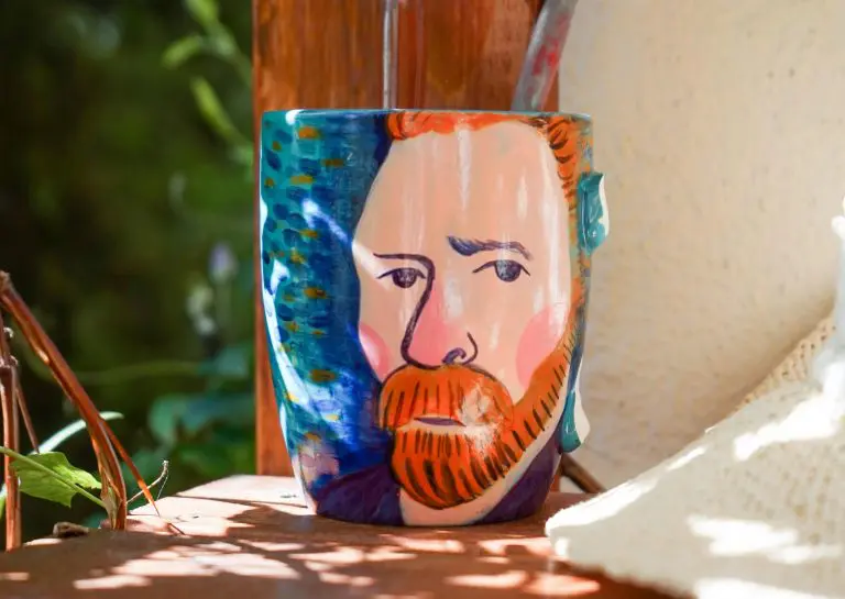 Jak już wspominałam, nie trudnię się kopiowaniem, jednak mogę wykonać kubek z grafiką inspirowaną jakimś innym dziełem, przedmiotem itp. Aby postępować zgodnie z prawem i swoim sumieniem korzystam wtedy z grafik z “domeny publicznej”. Należą do niej między innymi dzieła sztuki, do których prawa majątkowe wygasły 70 lat po śmierci autora. Tak jak możecie zobaczyć poniżej, ten spersonalizowany kubek został zainspirowany autoportretem Vincenta Van Gogha. Wyraźnie nawiązuje on do konkretnego dzieła, jednak nie jest pozbawiony nowych elementów twórczych, dodanych przeze mnie.