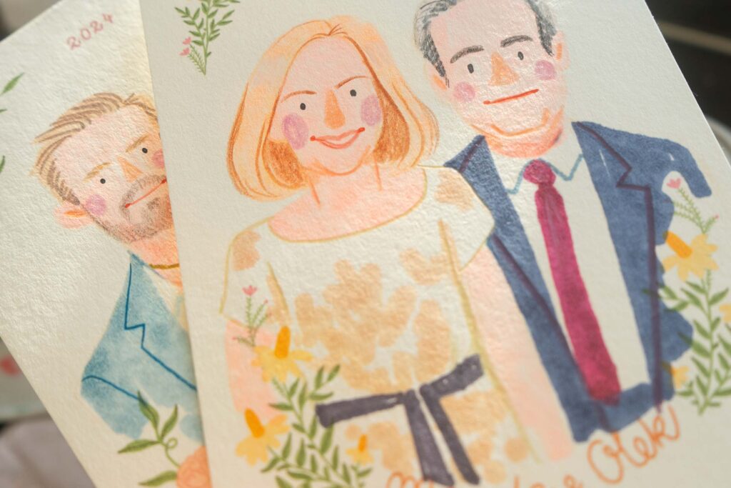 - Przekazanie dzieł: Gotowe portrety mogą zostać wręczone gościom podczas przyjęcia lub dostarczone Parze Młodej w eleganckich oprawach.