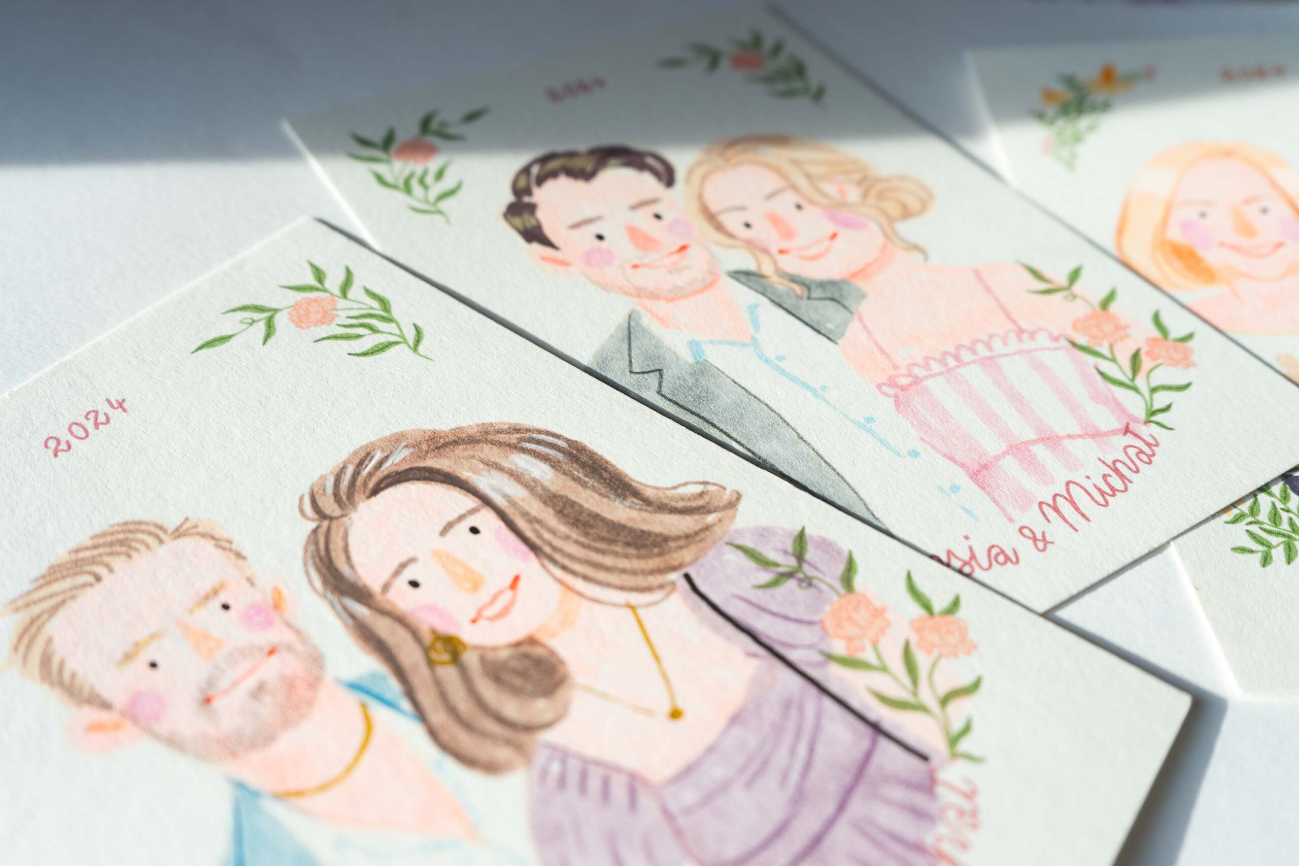Moje doświadczenie jako ilustratorki pozwala mi na szybkie uchwycenie cech charakterystycznych twarzy i stworzenie portretów, które idealnie oddają osobowość oraz emocje modela. Malowanie na żywo na weselu sprawia, że każdy moment staje się jeszcze bardziej magiczny i niezapomniany.